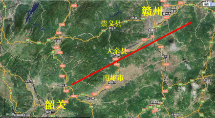 狭义大庾岭山脉:即庾岭山脉,大余县网站介绍县城在庾岭北麓,梅关要塞在江西赣州大庾县县城——广东韶关南雄市之间,因此它的主体在大庾县——南雄县之间,不包括崇义县—大余县之间的山脉。