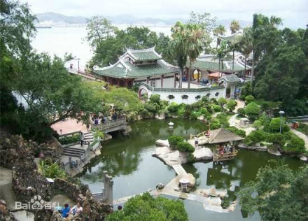菽庄花园:坐落在鼓浪屿港仔后,建于民国二年(1913年),主人林永嘉,又名叔臧,园名即以他的名字谐音而命名。甲午战争清廷失败,翌年割台湾给日本,林维源及其子叔臧不愿当亡国奴,迁到鼓浪屿居住。其后,叔臧建了这座花园。菽庄花园总面积20328平方米,其中水域3352平方米,建筑物2451平方米。