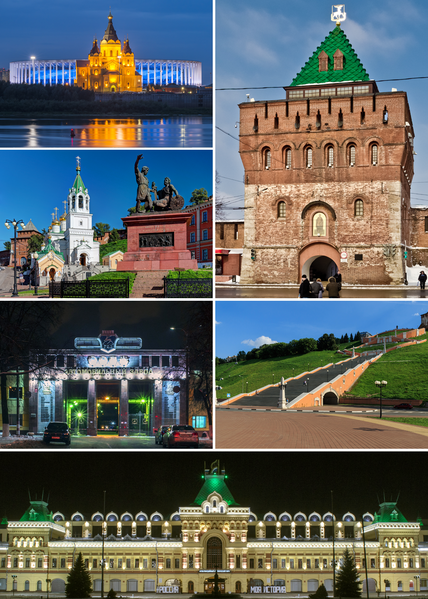 下诺夫哥罗德(英语:Nizhni Novgorod;俄语:Нижний Новгород) 俄罗斯城市,机械工业中心、文化中心,下诺夫哥罗德州首府。位于伏尔加河与其支流奥卡河的汇流处,西距莫斯科400千米。建于1221年。16世纪成为俄罗斯帝国的重要工商业中心。 是弗拉基米尔大公尤里·弗谢沃洛多维奇建立的一座城市。在苏兹达尔大公康斯坦丁·瓦西里耶维奇之子安德烈·康斯坦丁诺维奇王公统治时期(1359年),下诺夫哥罗德变成了一个拥有相当大领土的独立公国。下诺夫哥罗德公国于1393年被莫斯科大公瓦西里一世吞并。