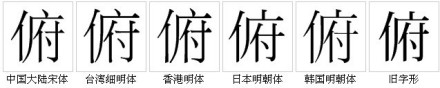 “俯”字的字形对比
