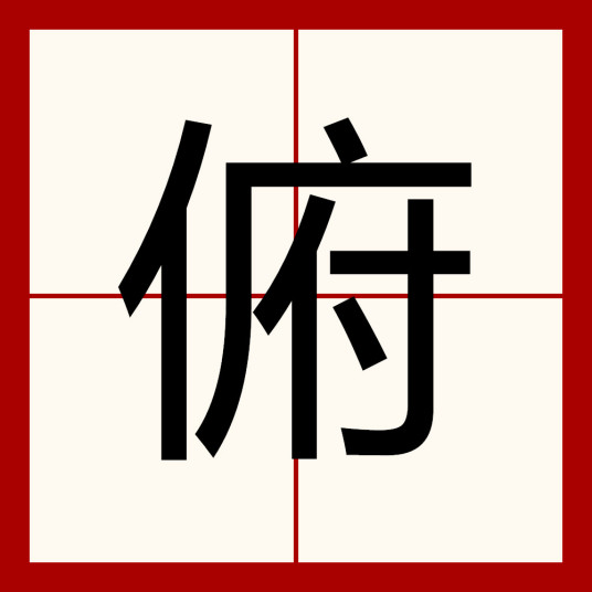 本义:向下、低头,与“仰”相对。如:俯身、俯视、俯瞰、俯首、俯临、俯拾即是、俯仰。