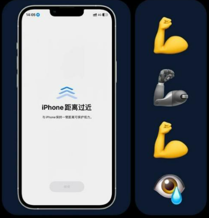 如果在玩手机时,你把iPhone拿得太近,并且持续一段时间,系统就会提醒你保持“一臂距离”。虽然这个功能并不算黑科技,但是它很人性化,特别是对于一些小孩子不懂如何保护视力的家长来说,它可以起到监督作用。