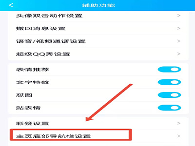 3、在辅助功能页面,打开“主页底部导航栏设置”。