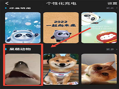 3、打开呆萌动物动效,点击“设为充电动效”。