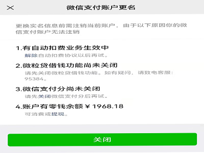 5、点击“继续更名”,查看更换实名信息所需的条件,即需注销当前账户。
