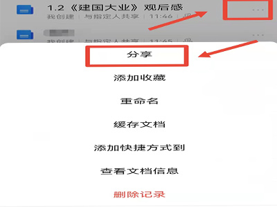 2、点击文档右侧的“…”图标,选择“分享”。