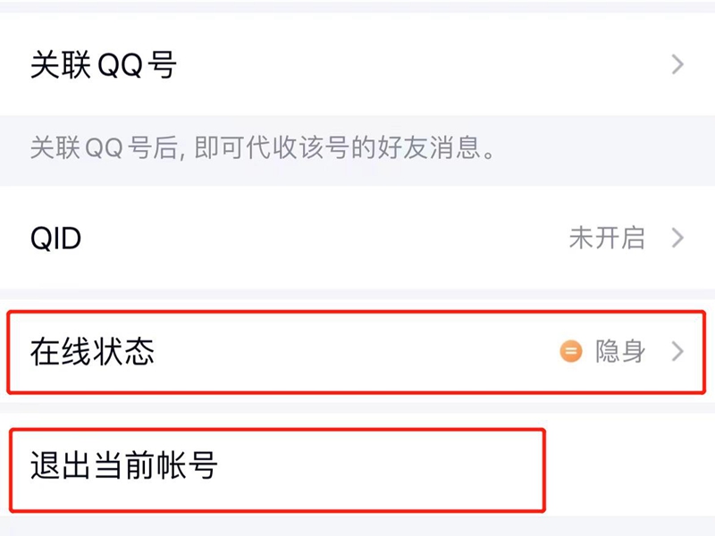 2、点击账号管理,选择退出当前账号或者将在线状态设为隐身即可。