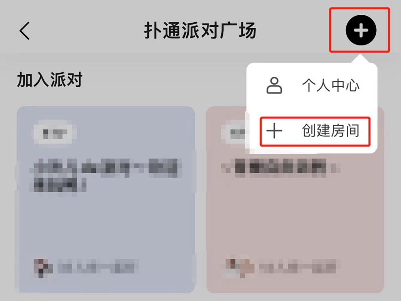 区里的扑通派对里进行创建。创建房间的具体操作如下: