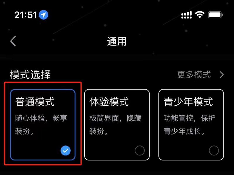 2、点击通用,在模式选择中切换为普通模式即可。