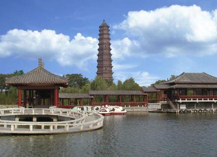 铁塔公园 | 铁塔公园位于开封古城的东北隅,占地面积51.24公顷,是中国100家名园之一,国家AAAA级景区。铁塔位于铁塔公园的东半部,是园内重要的文物, 也是主要的景点,建于公元1049年,是1961年我国首批公布的国家重点保护文物之一,素有“天下第一塔”的美称。铁塔高55.88米,八角十三层,因此地曾为开宝寺,有称“开宝寺塔”,又因遍体通彻褐色琉璃砖,混似铁铸,从元代起民间称其为"铁塔"。建成九百多年来, 历经战火、水患、地震等灾害,仍巍然屹立。 |