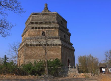 繁塔 | 繁塔位于开封古城东南隅,建于北宋开宝七年。繁塔为六角九层空心楼阁式、仿木结构的砖塔,原高80米,明永乐年间,将三层以上拆除,后在三层上建六层尖顶,形成了现今下粗上尖的塔姿。繁塔是研究我国建筑、美术和音乐的宝贵资料。 |