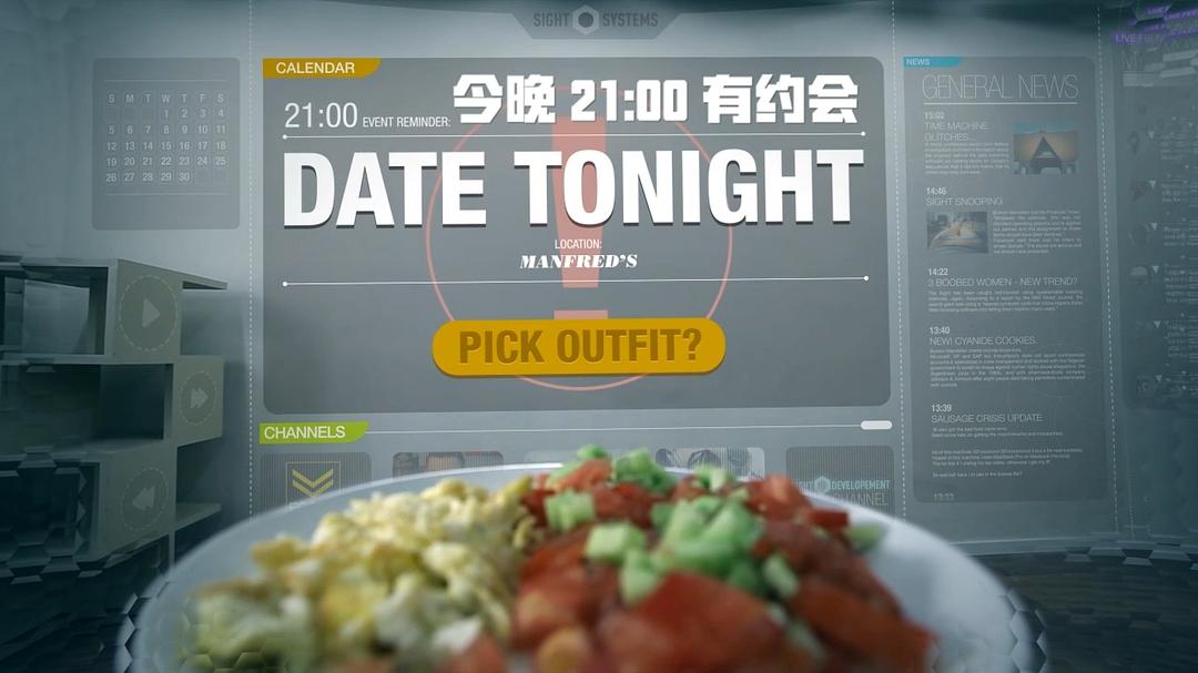 未来世界,一款名为“Sight”的隐形眼镜,让男主人公的生活变得智能有趣。体感游戏只需趴在毯子上就可以身临其境,打开冰箱就能看见所有食物的详细信息,做饭切菜更是像闯关游戏一般轻松好玩,甚至它可以为你选择今晚约会的衣服搭配。