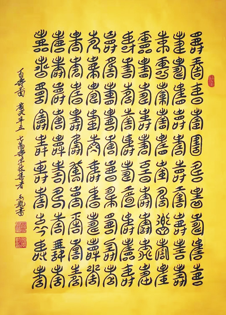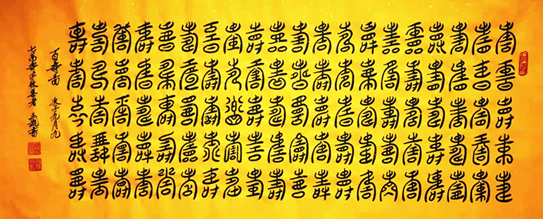 几十年来,他书写的“百寿图”收到众多各界友人的喜爱与收藏,有兴趣的朋友可以随时与他联络。