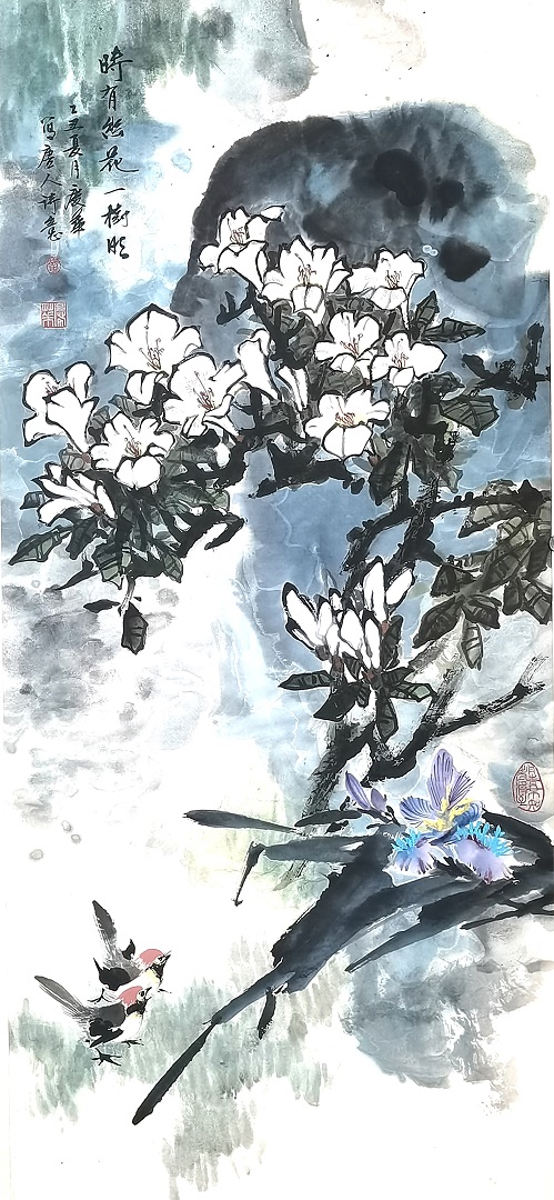 师从有民国海派四大花鸟名旦之一美誉的唐云先生,曾在海内外成功举办多次个人画展,广受欢迎与好评。