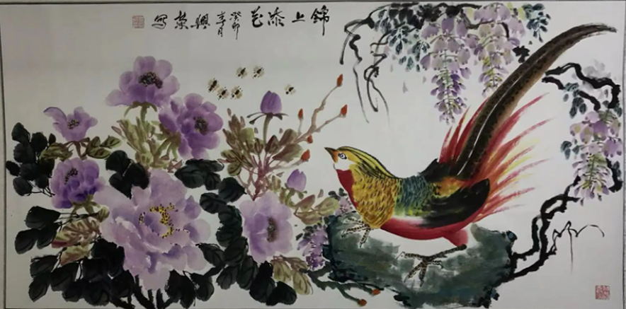 她拜读过许多名人作品,经过十几年的绘画练习和经验,现在有自己的一套画法,她喜欢花鸟,山水,她认为,艺术也是为大众服务的,要创作出让老百姓喜欢,看的懂的作品,画出来的作品大气,不小气不俗气。很受欢迎,例如袁兴荣画的孔雀,不用工笔,而用小写意的画法表现出来,配一些花草石头,使画面丰富多彩,艳而不俗,画出来的迎客松,画面滂沱大气,很受老百姓喜欢。