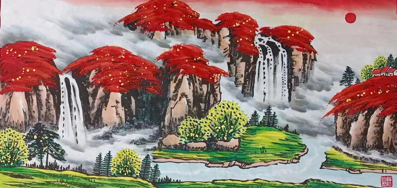 2011年 作品入选中央电视台与《百家收藏》联合主办的艺术巡展,在北京地铁、高铁候车室屏幕连续两年滚动播出,共展播牡丹、山水、30余幅。