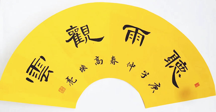高老师具有丰富的书法教学培训经验,历经四十余载的书法研究创作,主攻隶书,潜心翰墨,笔耕不辍,具有个人独特的艺术风格。观其隶书作品,极有帛书隶的风度,也有碑刻隶的风骨,可作刚柔相济的典范。左掠之,右挑之,一波必三折而过,一竖常隐锋而成。正是精心琢磨曹全碑的大有收获。高老师博学多识,儒雅君子,修成地地道道的文人品质,所以习成书法就有书如其人的核心。起笔落笔可以写出金书锦字,一展锋毫可以传承书法文化正宗龙脉。在他的书法世界里游目骋怀,文人书法,道法自然!