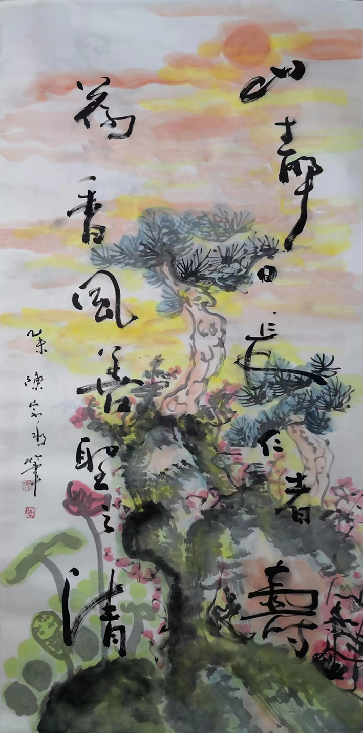 陈宗水,又名(陈淙水),字达泽,号云鹤,1959年出生于福建省仙游县,现为中国传统文化促进会会员,中国书画家协会理事,北京国韵翰墨书画院副院长,高级书法师,早年习柳公权《玄秘塔》等碑帖,后笃志行草书,崇尚唐人草法,遍临各家法帖,博采众长,几经潜心研习,师古出新,自成一格,擅长中国画。书画作品相得益彰,构想营造“书画一味体”,独领风骚……