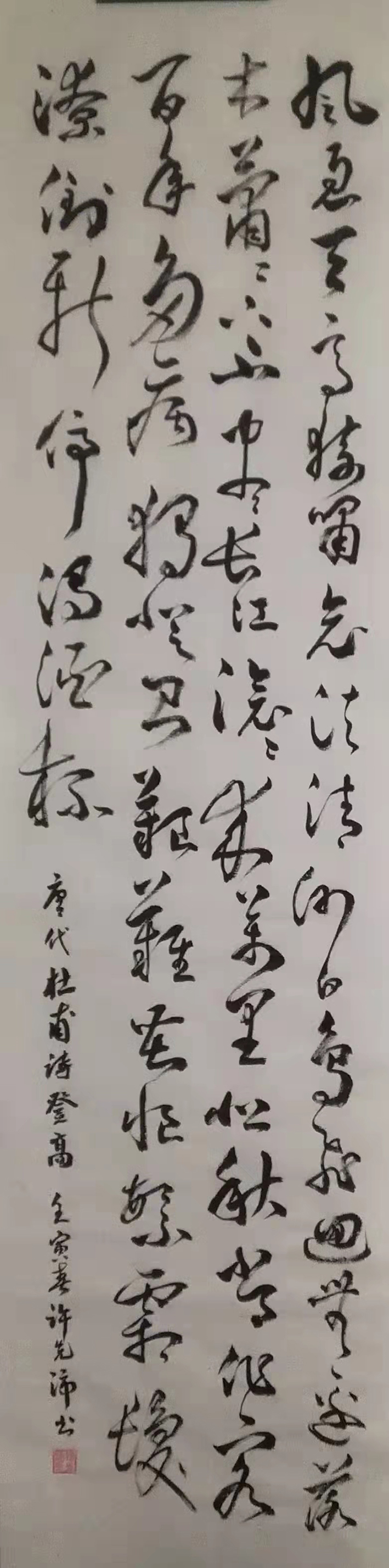 近十年学草书,以怀素《小草千字文》入手,学孙过庭《书普》,及王羲之巜十月十日帖》,并欢摩互比其他草书帖。学习几十年没有间断,在学习中受到著名书画家肖天宝老师的指教。