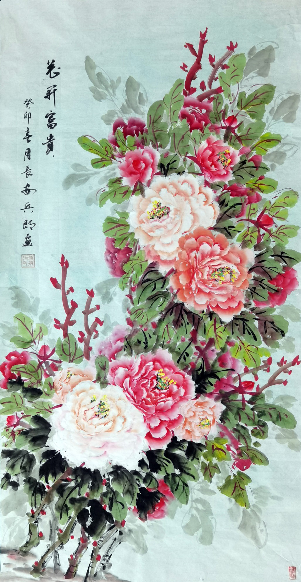 郝兵朗先生研学牡丹画技法四十余载,近年来以擅长画牡丹闻名海内外,被书画界盛赞为“西北花王”。1994年曾随众多书画名家赴加拿大多伦多举办中国画展。1995年赴美国亚洲文化中心写生实践和学术交流。曾被邀赴俄罗斯、泰国、马来西亚、新加坡、韩国、日本和意大利、比利时等各国艺术交流。