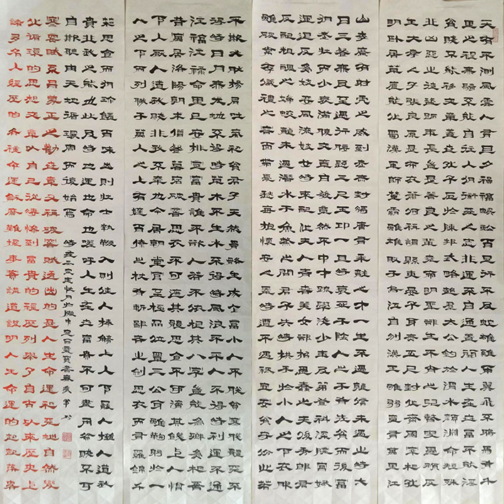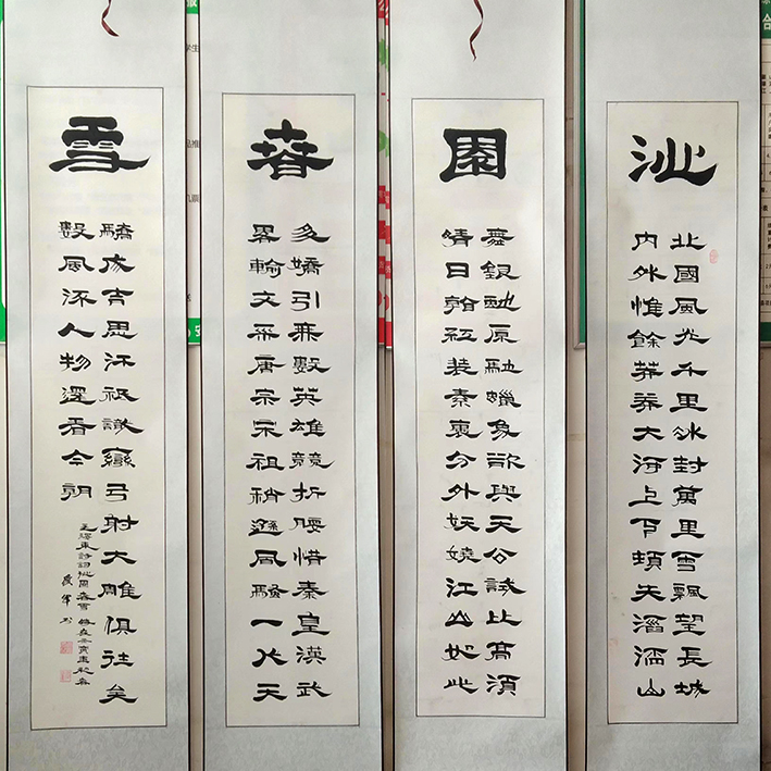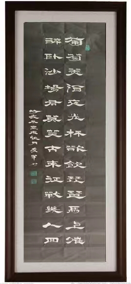 自幼酷爱书法,擅长隶书。师从曹琦、曾华,刻苦钻研。隶书造诣颇深,乙瑛碑 曹全碑等范本,更是爱不释手反复临帖。从而,达到精湛艺术的升华。他的隶书大小相近,粗细,疏密富有变化,特别是个别飞白和廋笔,既有《曹全碑》的特点又有飘逸奇宕的新意。