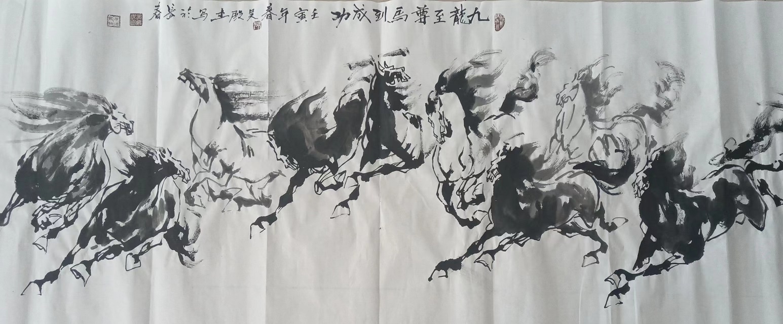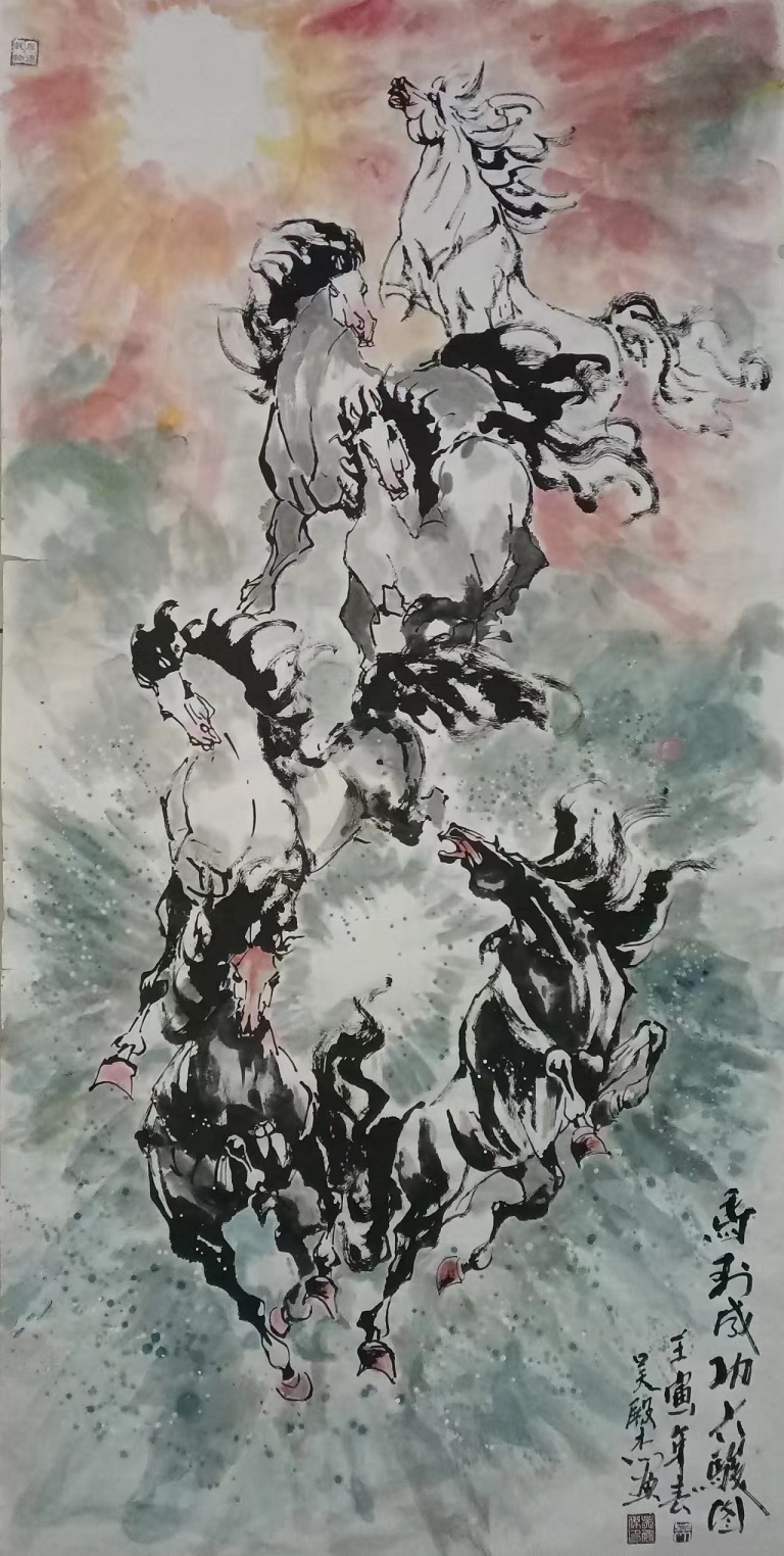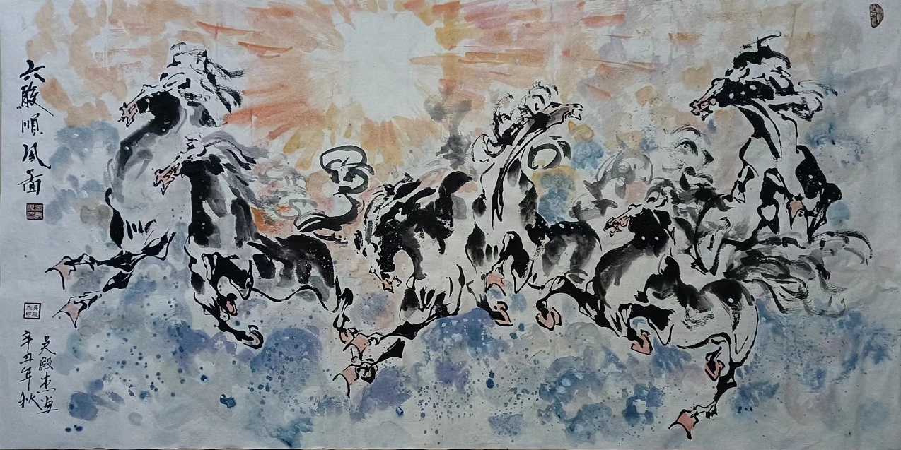 创作于2021年的4尺横幅“马到成功六骏图”被中国国家博物馆收藏,收藏号:国博收藏2037号。
