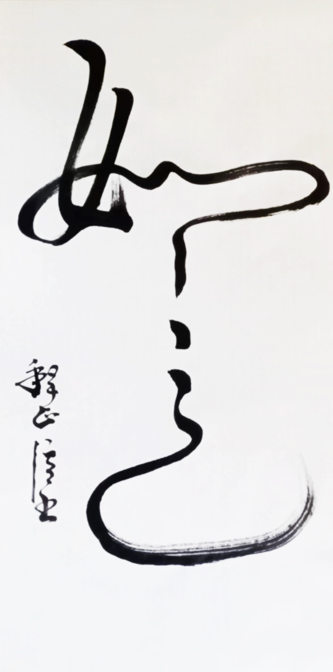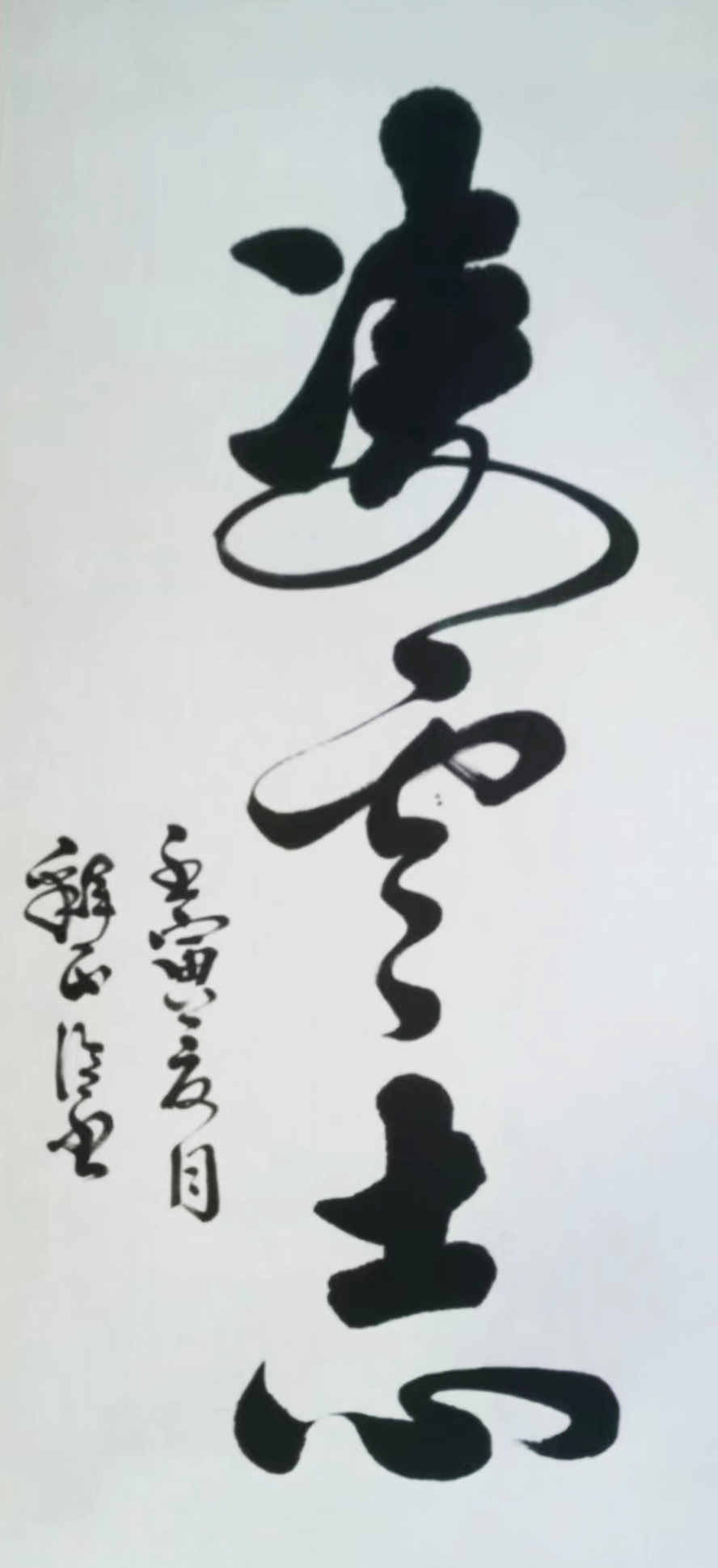 观正信法师书法,其色,其形,其浓淡枯湿,其断连辗转,粗细藏露皆变数无穷,气象万千。丝毫不受束缚,甚至整行一笔而下,有如神仙般的纵逸,来去无踪。观其力而不失,身姿展而不夸,笔迹流水行云。落笔如云烟。观之若脱缰骏马腾空而来绝尘而去;又如蛟龙飞天流转腾挪,来自空无,又归于虚旷,这近乎癫狂的原始的生命力的冲动中包孕了天地乾坤的`灵气。