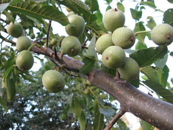 | 核桃 蓝田核桃生产历史悠久,先后引进了河北露仁核桃、新疆薄皮核桃等品种,经过精心栽培管理,选育了适宜当地栽培的优良品种——北仓湾803,并通过省级评定。经过20多年的大面积推广,蓝田县核桃栽植面积达6万亩,年产量2.8万吨。其中发展北仓湾803优质核桃2万亩,年产量35万吨。 |