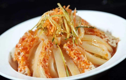 | 百花全鸡 用发菜作配料的名菜。用一只肥母鸡,取下鸡脯、鸡里脊,加脂肉剁成细泥,加水、蛋清、精盐,搅成鸡茸。剩下部分加葱、姜、精盐上笼蒸烂取出,留头、爪、翅膀,将其余的肉切成五分大的片铺在鱼盘中。另将菠菜、发菜、蒸熟的蛋黄分别制成细末。这时,将鸡茸抹在盘内铺的鸡片上做成菱形块(也可做成其它图案)将菠菜、发菜、蛋黄这四种碎末整齐地撒在鸡茸上。将鸡头用刀劈开摆在鱼盘前端,鸡爪去尖按鸡形摆在鱼盘的另一端,翅膀摆在两边。上笼蒸十分钟,勾流水芡即成。这道菜操作精细,图案新颖,香嫩可口,清淡不腻。 |