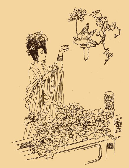 她以“回眸一笑百媚生,六宫粉黛无颜色”而“三千宠爱在一身”,可她也曾一时失宠而借酒浇愁,醉后忘其所以,放浪形骸。唐玄宗先一日与杨贵妃约,命其设宴百花亭,同往赏花饮酒。至次日,杨贵妃遂先赴百花亭,备齐御筵候驾,孰意迟待移时,唐玄宗车驾竟不至。迟之久,迟之又久。乃忽报皇帝已幸江妃宫,杨贵妃闻讯,懊恼欲死。杨贵妃性本褊狭善妒,尤媚浪,且妇女于怨望之余,本最易生反应力。遂使万种情怀,一时竟难排遣,加以酒入愁肠,三杯亦醉,春情顿炽,忍俊不禁。于是竟忘其所以,放浪形骸,频频与高力士、裴力士二太监,作种种醉态,及求欢猥亵状,乃始倦极回宫。