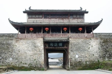 南谯楼 南谯楼,始建于隋末,为歙州(今徽州)人汪华吴王府外子城的正门门楼。南谯楼是古代夜间向人们报时的地方,打更的鼓声就是从谯楼传向四面八方的。南谯楼三重三开间,高约20米,宽约15米,进深约10米。砖木结构,悬山顶,重檐高脊,紫墙青瓦。下为门厥,门阙宽4.5米,左右各有木柱13根。每根柱围1米余,每柱均呈10度左右斜倚墙壁,用以支撑大梁。1997年,国家文物局拨款重建,并基本保持了木构清代风格,门阙为宋代风格。 |