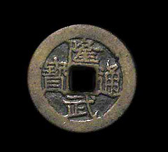 隆武帝在隆武元年(公元1645年)踞福建福州时,铸造隆武通宝钱,俗称隆武钱。隆武钱是明末南明钱,钱币背“南”小平大样铜钱:背有星纹或无纹,或带有背文“户”、“工”、“南”、“留”等字,以背“南”、背“留”最为稀少,此钱是小平大样钱,初铸版,极罕见。文化