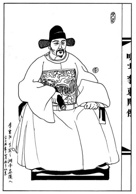 李东阳,生于正统十二年六月九日,卒于正德十一年七月二十日(1447年7月21日-1516年8月17日),字宾之,号西涯。祖籍湖广茶陵(今湖南茶陵),因家族世代为行伍出身,入京师戍守,属金吾左卫籍。明朝内阁首辅。