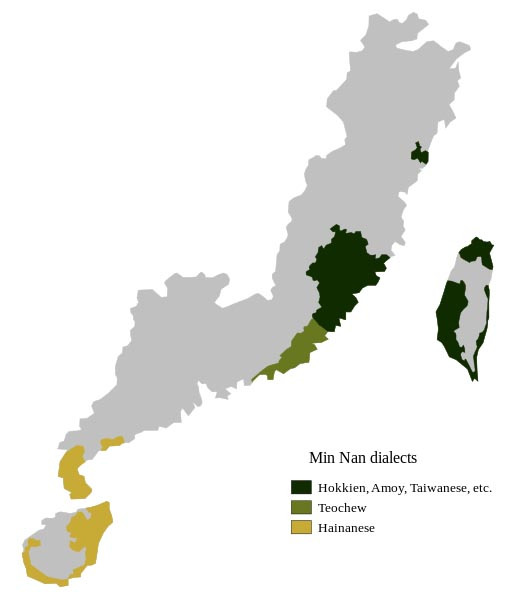 闽南语,据传起源于黄河、洛水流域,在西晋时期、唐朝、北宋迁移至福建南部,发祥于福建泉州。现主要分布地除闽南地区和台湾地区外,还分布于闽东北地区、浙东南区、及广东潮汕地区(揭阳、汕头、潮州)、海陆丰地区、粤西地区(湛江、茂名、阳江)、粤港澳大湾区(中山、香港)、海南岛及东南亚的大部分华人社群。全世界使用闽南语的有7000多万人。