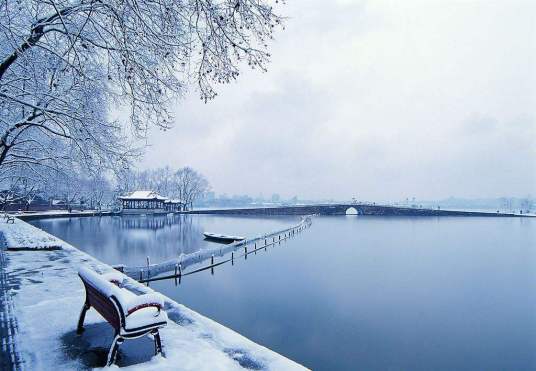 ⑤断桥:位于杭州北里湖和外西湖的分水点,据传始建于唐代,宋代称保佑桥,元代称段家桥,简称段桥,谐音为断桥,一说由此得名。“断桥残雪”为西湖十景之一。