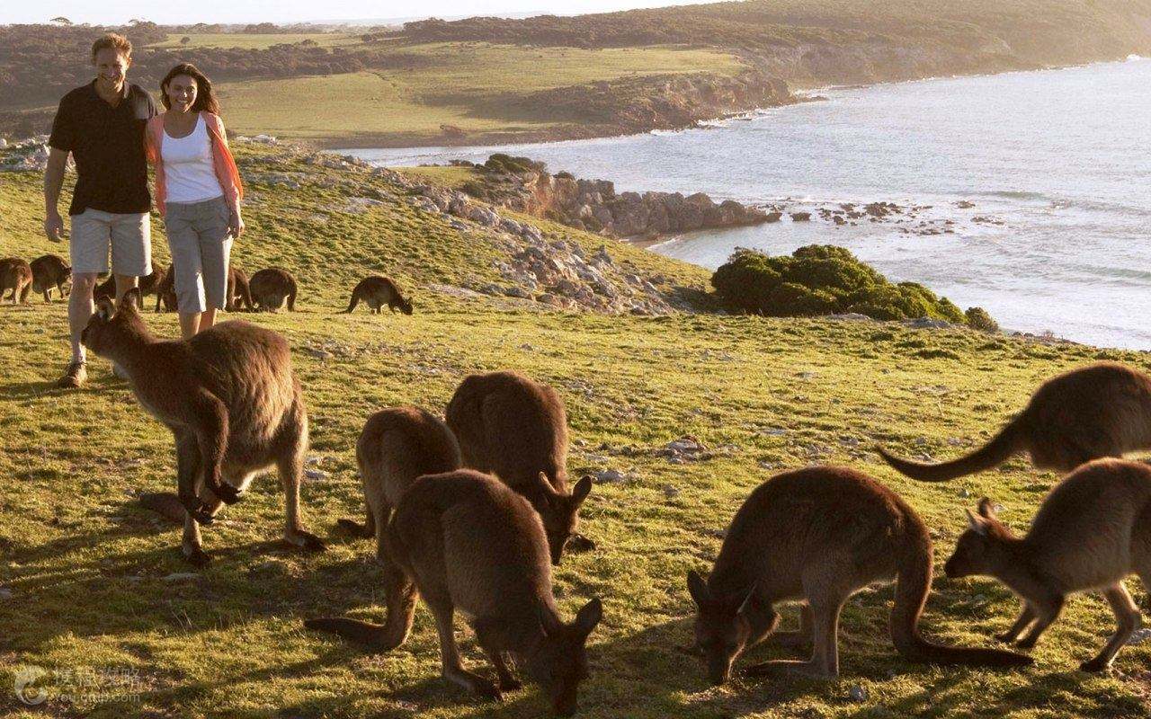 袋鼠岛,澳大利亚第三大天然岛屿,距离南澳大利亚大陆仅15公里,其面积之广,足有八个新加坡之大。最早时期,探险者们一度认为袋鼠岛上无人居住,直到后来人们在袋鼠岛上发现了石头工具和原住民营地,才发现起码在一万年之前,岛上就已有人迹。现在的袋鼠岛,依然保持着它纯净、自然的风貌,它曾被美国国家地理杂志评为“亚太第一岛”。袋鼠岛绵长的海岸线、高耸的悬崖峭壁、雄壮的自然奇观足够让热爱自然的游客尽情探索;在此和海狮、海豚同游,偶遇在黄昏时分喂养小袋鼠的袋鼠妈妈或者与腼腆的考拉不期而遇,还有很多其他野生动物诸如沙袋鼠、企鹅等,可与人类亲密地相处,因此袋鼠岛被形象地称为“没有围栏的动物园”。同时袋鼠岛还是南澳大利亚州最新被认可的葡萄酒产区,拥有18家本地酒标。