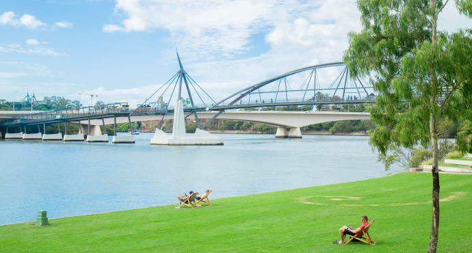 南岸公园在布里斯班河畔南岸,是一个带状的亲水公园,沿河修建,与CBD隔岸相望。曾是1988年万国博览会举办的地方,现在公园仅留的遗址就是当年的尼泊尔馆。在这个占地16公顷的公园里,有人造海滩、摩天轮和游乐园,到处都被绿色植被覆盖。本地人喜欢休闲时候来这野餐野炊,享受生活。周六公园里还会有小型市集。