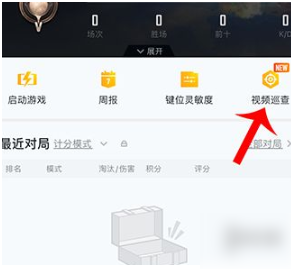 首先我们打开和平营地,点击战绩,进入战绩页面,就可以看到这边的视频巡查,点击进入巡查界面。