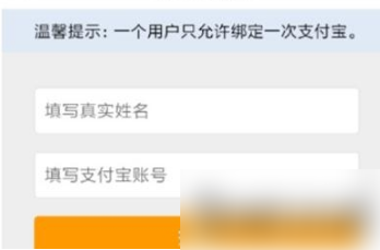 最后,用户填写自己的真实姓名和支付宝账号即可完成绑定。