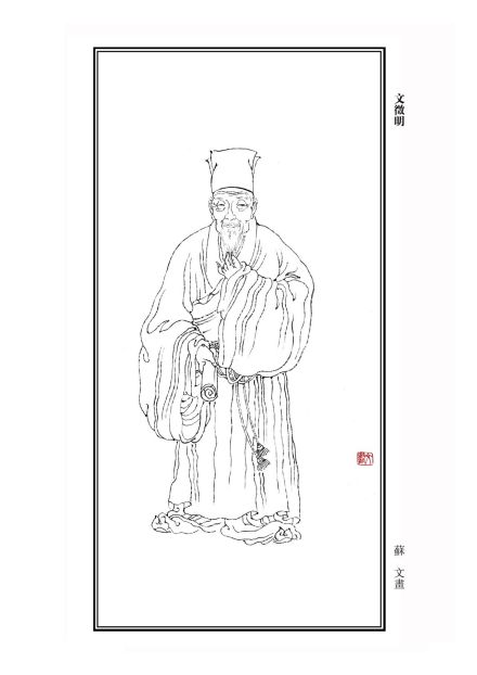 《明史》:①其为人和而介。②吴中自吴宽、王鏊以文章领袖馆阁,一时名士沈周、祝允明辈与并驰骋,文风极盛。徵明及蔡羽、黄省曾、袁裹、皇甫冲兄弟稍后出。而征明主风雅数十年。
