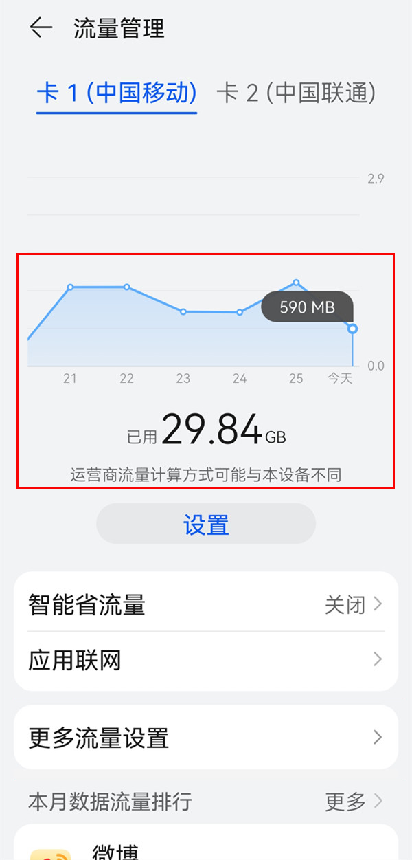 通过设置查看已用流量方法: