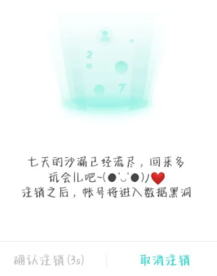 注销成功的短信,如果等到7天注销不了,没有确认短信的话,大家可以卸载了然后重新下一遍再登录,就可以看到确认的短信了。