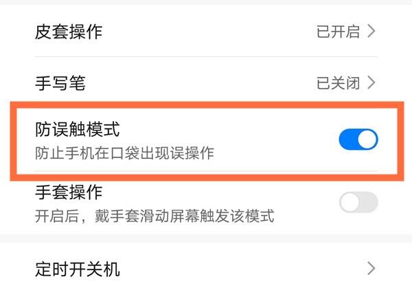 3、将【防误触模式】右侧的开关关闭即可。