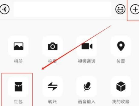 2、点击右下方“+"图案,找到并点击红包图标;