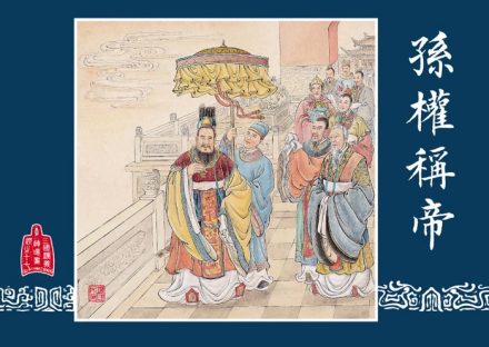 孙权的父亲孙坚和兄长孙策,在东汉末年群雄割据中打下了江东基业。建安五年(200年),孙策遇刺身亡,孙权继任掌事,被曹操表举为讨虏将军,领会稽太守。在张昭、周瑜等人的委心服事下,孙权招延俊秀,聘求名士,分部诸将,镇抚山越,征讨反抗势力。建安十三年(208年),占有荆州的曹操挥兵南下,议者多劝孙权降曹,惟有周瑜、鲁肃坚决主战,遂与刘备联军,于赤壁之战大破曹军。建安二十四年(219年),又派吕蒙成功袭取荆州,使领土面积大增。黄武元年(222年),被魏文帝曹丕册封为吴王,建立吴国。同年,在夷陵之战中大败刘备。黄龙元年(229年),在武昌正式称帝,国号吴,不久后迁都建业。孙权称帝后,设置农官,实行屯田,设置郡县,并继续剿抚山越,促进了江南经济的发展。黄龙二年(230年),派将军卫温、诸葛直抵达夷州(今台湾)。