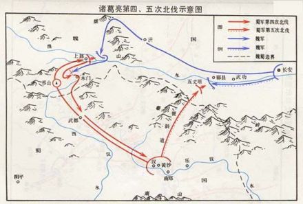 建兴六年(228年)至建兴十二年(234年),期间诸葛亮对魏发动五次进攻,虽颇有战果,但都以各种原因退还,未能完成“兴复汉室”的目标。