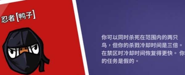 该职业与普通鸭类似,若是遇到两人抱团的情况可以刀一个,然后静音一人,等其报警后,按自己不在场情况发言。由于会议结束后,被静音的玩家极大概率会去摇铃出你,玩家需要在下一轮中记得及时开投喂食破坏(喂食破坏比摇铃快一秒),并且在摇铃外面等着被静音的那位玩家出现,然后进摇铃除刀掉该玩家即可。