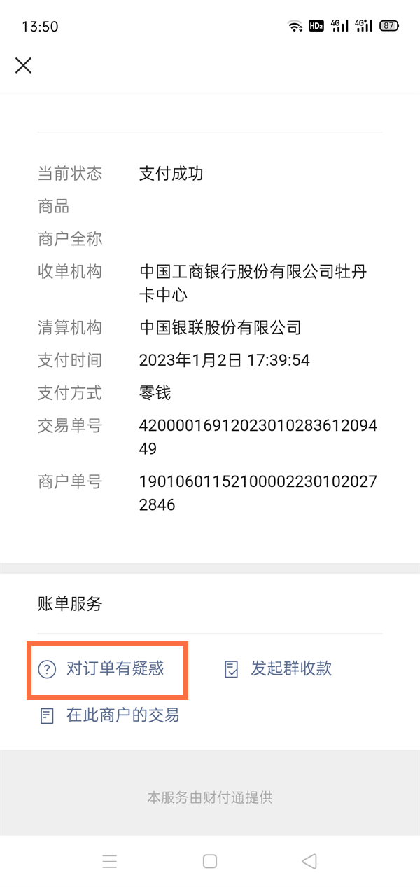 4、点击对订单有疑惑。