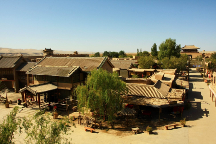 | 敦煌古城 位于敦煌市至阳关公路的南侧大漠戈壁,距市中心25千米。是1987年为中日合拍大型历史故事片《敦煌》,而以宋代《清明上河图》为蓝本,仿造沙洲古城设计建造而成,建筑面积达1万平方米。敦煌古城的建筑风格具有浓郁的西域风情,城开东、西、南三门,城楼高耸;城内由高昌、敦煌、甘州、兴庆和汴梁五条主要街道组成,街道两边配以佛庙、当铺、货栈、酒肆、住宅等,敦煌古城再现了唐宋时期西北重镇敦煌的雄姿,被称为中国西部建筑艺术的博物馆。 |